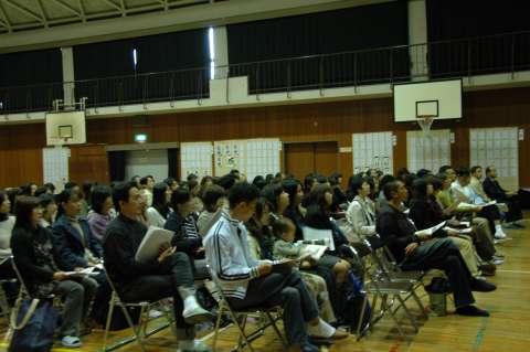 歯科衛生士によるブラッシング指導風景 20071129和歌山市保健所健康教室2007年11月29日 和歌山市保健所 健康教室 で「お口から広がる健康 --歯垢を取ってプラス思考 --」 と題してお話をさせていただきました。予定数を超す市民の参加があり、皆さん熱心に聞いてくれました。 保健所歯科衛生士による歯ブラシ指導もあり、おみやげに 歯ブラシ、歯間ブラシ、フロッスシルク(糸ようじ) や歯磨きペーストを皆さんもらいました。「とても為になった」というアンケートに記入いただけた方が多く、保健師も 「アンケートがこんなに帰ってきて、記入欄にこれだけ書いてくれることは少ない」と熱心な皆さんの反応に驚いていました。 写真は会場の風景です。