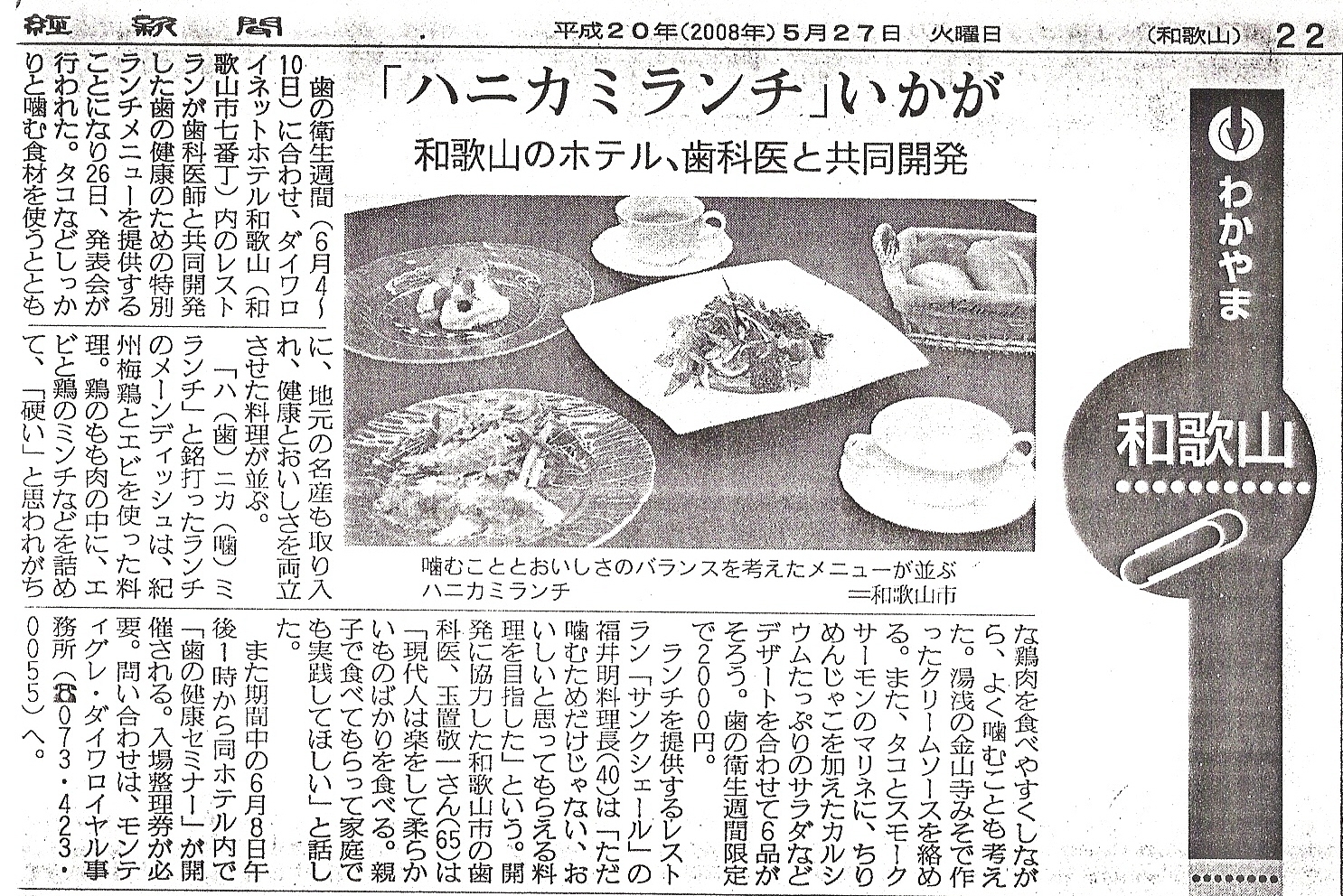 « 2008年03月 | メイン | 2008年06月 » 2008年05月 アーカイブ2008年05月27日20080527産経新聞2008年05月29日20080529和歌山放送2008年5月29日(木曜日) 6月2日(月曜日)放送の「むつろうの午後はなるほどっ!」の録音をしました。 歯の衛生週間を控えて、「口腔衛生」という結構内容のある話ですが、小林睦朗さんはご存じのとおり、とても軽妙洒脱な語り口で、 こちらの話したいことを引き出してくれました。NGなし。1発で約30分の録音を終えました。楽しい経験でした。 |