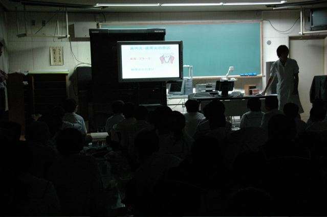 « 2008年09月 | メイン | 2008年11月 » 2008年10月 アーカイブ2008年10月01日20081001禁煙支援歯科医師の認定証20081001伏虎中学校・歯ブラシ指導2008年10月01日 和歌山市立伏虎中学校で歯ブラシ指導がありました。和歌山歯科衛生士専門学校の専任教員:奥野先から、 歯の本数、う蝕(虫歯)や歯肉炎、そして、歯周病の原因が細菌であることなどを学んだあと、歯ブラシの使い方について指導してもらい、 実際自分で行いました。みんな熱心に聴き、頑張って歯を磨いてみました。最後に私が生徒のみんなに授業の内容を聞いてみましたが、 すべての質問に正解してくれました。これは、授業内容をきっちり吸収していたということで、素晴らしいと思いました。この後、 歯1本とて神経の通ったものはできないこと。だから一人ひとりの体はとても貴重で、命はとても大切であること。だから、 自分も友達もみんなお互い大切にすることについて話をしました。もう一つ、以前から気が付いていたのですが、最近特に、伏虎中学校に入ると、 廊下ですれ違う生徒がみんな「こんにちわ」と大きな声であいさつしてくれることです。1年生は特に私が校医であることを知らないので、 学校に用があってきた「だれか」のはずですが、大きな声であいさつをしてくれることは、とても気持ちが良く、 学校の指導の素晴らしさを感じました。授業風景と帰りに見た和歌山城です。クリックして写真を大きくしてみてください。 2008年10月08日200810京都散策2008年10月12日20081011東京ボランティア診療2先ほどのブログの写真です(写真が大きすぎて、貼りつかないようです)。
