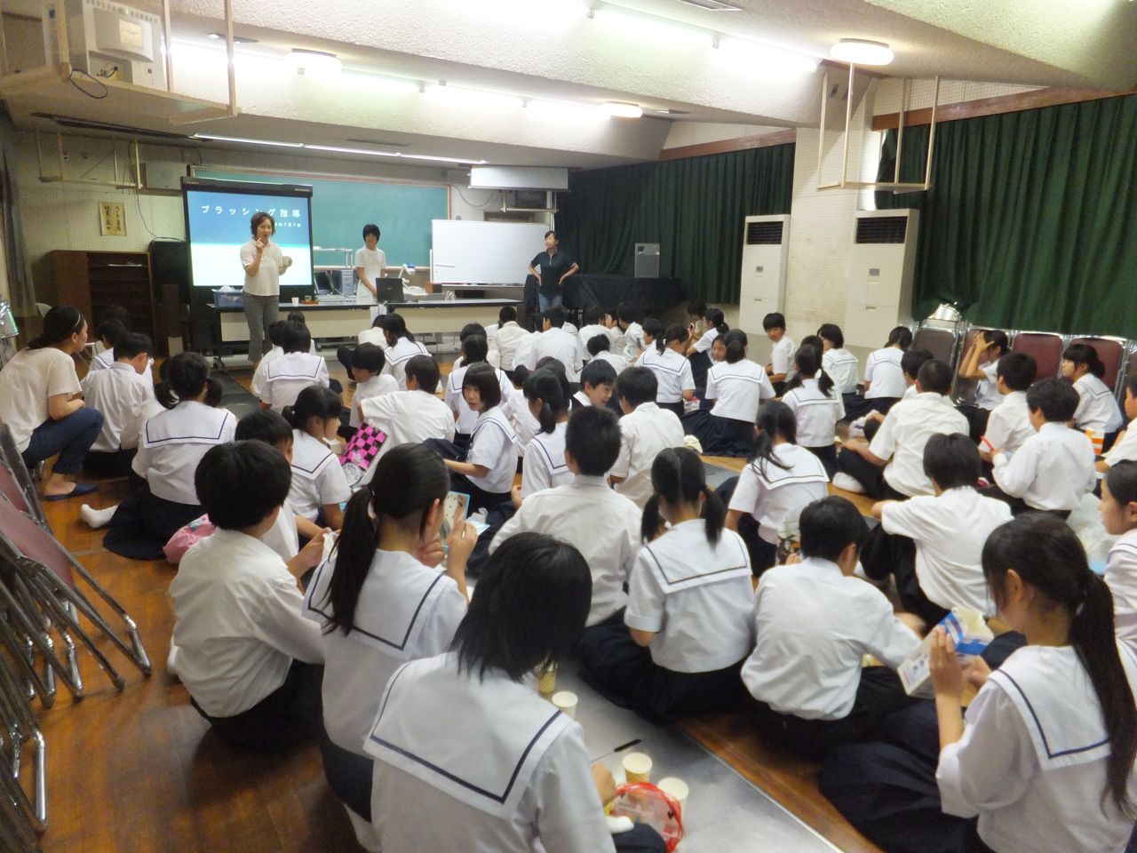 各写真をクリックすると、拡大します。 20110707-2 楠見東小学校 3年生 禁煙教育2011年07月07日(木曜日) 楠見東小学校3年生禁煙教育 七夕の日先ほどの東山東小学校の授業が終わりすぐに楠見東小学校の3年生の授業に行きました。ここのせいとさん方もまじめで、熱心に聞いてくれました。中には「タールって何かな?」と聞くと、「アスファルトの材料」とか「アンモニアはみんなのどこにあるかな?」と聞くと「おしっこ」とか、なかなか博学の子がいました。3年生では無理かな?と思うようなこともちゃんと答えてくれて、とても授業がやりやすかったです。最後には質問もしてくれました。質問で多かったのは「何で作っているのですか?」とか「最初に作ったのは誰ですか?」というようなことでした。 各写真をクリックすると、拡大されます。 20110707伏虎中学校 歯磨き指導2011年07月07日(木曜日) 伏虎中学校 歯磨き指導 学校歯科医をしている伏虎中学校で、和歌山県歯科衛生士専門学校の奥野先生に来てもらい、歯磨き指導をしてもらいました。奥野先生はベテランの専任講師だけあって、話をする内容、スピード、ポイントの置き方などとてもわかりやすく教えてくれ中学校の先生もおっしゃってましたが、今年の1年生は特に静かに聴いてくれて、とても上手に磨いていました。最後に私がみんなに質問をしました「歯1本の値段はいくらぐらいと思いますか?」ほとんどの生徒は「100,000円ぐらい」と答えていました。そこで「インプラントというのを知ってますか?」と聴くとほとんどの生徒さんは知っているようでした。1本の歯のところにインプラントをきっちりしようとすると約50万円かかります。その歯には神経が通っていません。神経を通す技術は今のところありませんが、もしできるとして、1本につきインプラントの10倍以上費用がかかります。どんなに高い費用をかけても神経を戻すことは至難の業です。だから「歯を磨くということは1億6千万円以上の値打ちを守ると言うことです。今日奥野先生から聞いた、歯の話と歯磨きの仕方とは1億6千万円を守るというお話です。みんながんばっては磨きできますか?」と話をすると、みんな神妙な顔をしていました。 奥野先生の熱心な授業風景 校長先生も忙しい中授業に参加してくれました。 しゃしんを 2011年07月17日2011年07月22日20110722麻酔がちっとも痛くない’みずき’ちゃん2011年7月22日(金曜日) 麻酔が平気な’みずき’ちゃん みずきちゃんは生まれてすぐにお母さんのチェックと一緒に歯科に通っていました(正確にはお腹にいるときから)。それで歯科医院のお姉さんやみんなととても仲良しで、チェックもとても楽しみで、歯科医院に通うのがとっても好きです。今日は、上の乳歯が抜けたのと、下の乳歯がぐらぐら動いてきたので診療に来ました。下の歯のレントゲンを撮ってみるとしたから大人の歯がもう大分出てきていました。それで、麻酔をして歯を抜くことにしました。麻酔は針のない’Syrijet:シリジェット’というので大体のところをして、後は針のある麻酔をしましたが、ちっとも痛くないので’にこにこ’笑顔で歯を抜くことができました。痛くないので治療が大好きです。夏休みなので、あすはおじいちゃん、おばあちゃんのところへ遊びに行くことにしています。このように、歯科医院でいつも歯をきれいにしているとちっとも痛くなく、気持ちがよくなるので通うのがとても楽しみになります。スタッフのみんなと仲良しにしていると、こわくないので何をするのも恐ろしくなくでき、とても簡単に済んでしまいます。みんなこのように痛くなく、気持ちよくなるようにするといいですね! 2011年07月23日20110723なでしこおめでとう2011年07月23日(土曜日) ’なでしこ’ 世界選手権優勝おめでとう 約1週間もたとうとして、「何でいまさら」かもしれませんが、いまだにうれしく、うきうきしてやはり書こうと思いました。ベスト8まで残るだけでもすごかったのですが、その後の戦い方は見ていて本当に惚れ惚れしました。体格も体力も本当に段違いの欧米のチームを相手に、可憐な’なでしこ’たちはかかんにいどみ、見事に優勝しました。優勝戦のアメリカチームとの試合が始まってすぐに「これは勝てる相手ではない」と思い込みました。私には攻められ続けた120分のように見えたのです。それでも最後のPK戦にまで持ち込み、優勝した実力は見上げたものです。 そして、今日本当に書きたかったのは、実はアメリカの選手についてです。そう、あの日本を苦しめ続けた’腕白’ならぬ’ワンバク’選手のことです。試合が終わった後、アメリカの全選手が呆然としている中、日本の選手のところに来て、一人ひとりと握手をしている姿を見て「これはすごい選手だ!」と思いました。しかし、それにとどまらず、表彰式のときに、自分はトロフィーをすでにもらって壇上で待機していたとき、澤選手がたしかMVPのトロフィーをもらって少し脇に寄ったと