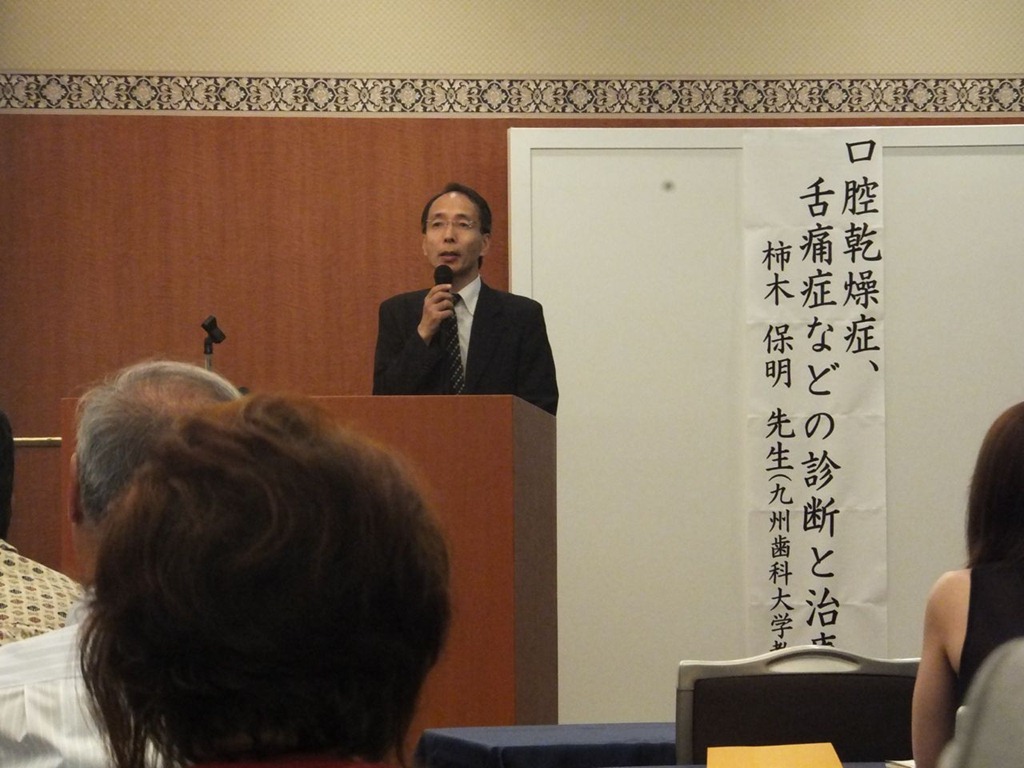 歯医者さんに行くのは、歯が生えたり、悪くなってからと考えがちですがお母さんが母子手帳をもらった時に歯医者さんに行く習慣をつけて栄養指導をしてもらってください。赤ちゃんには既に歯胚が芽生えています。また、ご家族の方は、歯のケアーをして、虫歯や歯周病になる細菌を少なくすることで、その環境で育てられた、赤ちゃんは虫歯になる可能性が低い統計が出ています。ご両親などが歯のケアーをすることは、生まれてくる赤ちゃんへの最高のプレゼントとなります。 2012年07月23日20120722 日本歯科東洋医学会関西支部会2012年07月30日20120728「口腔乾燥症・舌痛症」講習会2012年7月28日(土曜日) 午後から表記講習会がありました。 九州歯科大学教授 柿木保明 先生 のご講演で、先週の日本歯科東洋医学会に続き、口腔乾燥症、舌痛症についての講習会でした。柿木教授は在宅医療や、大病院の歯科口腔外科などを精力的にされて現在大学での教育、研究に当たっておられます。基礎的な研究や、臨床での患者さんとの対応などとても興味深い内容の講演でした。