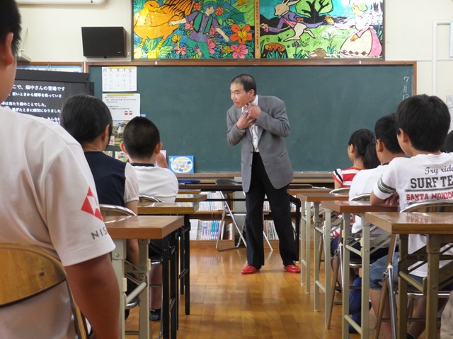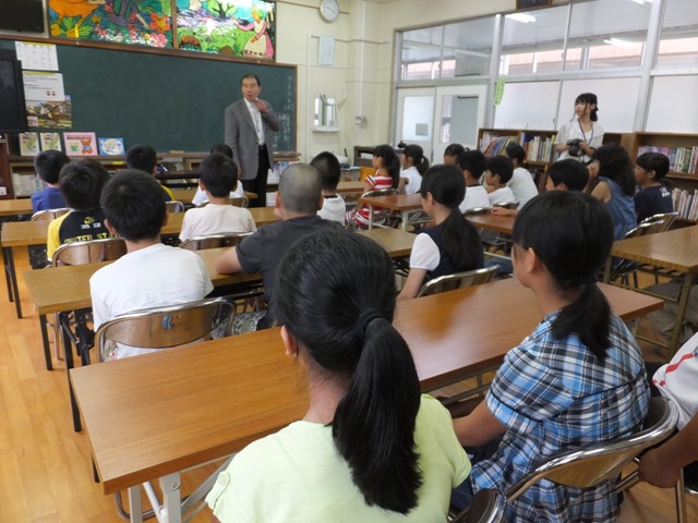 東山東小学校、6年生の授業に畑中さんと一緒に行きました。大変落ち着いた学年で、写真からも分かるように畑中さんのお話も熱心に聞いてくれました。