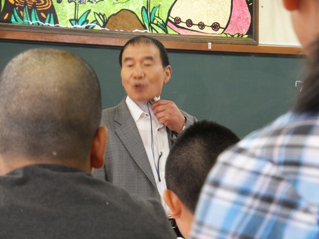 生徒さん方にわかりやすいように穏やかにご自身がいかに大変であったかをおはなししてくれます。せいとさんがたはみをのりだすようにしてきいてくれました。