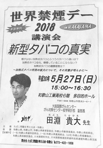 2018.5.30に東京で世界禁煙デー記念イベントが東京で開催されます。