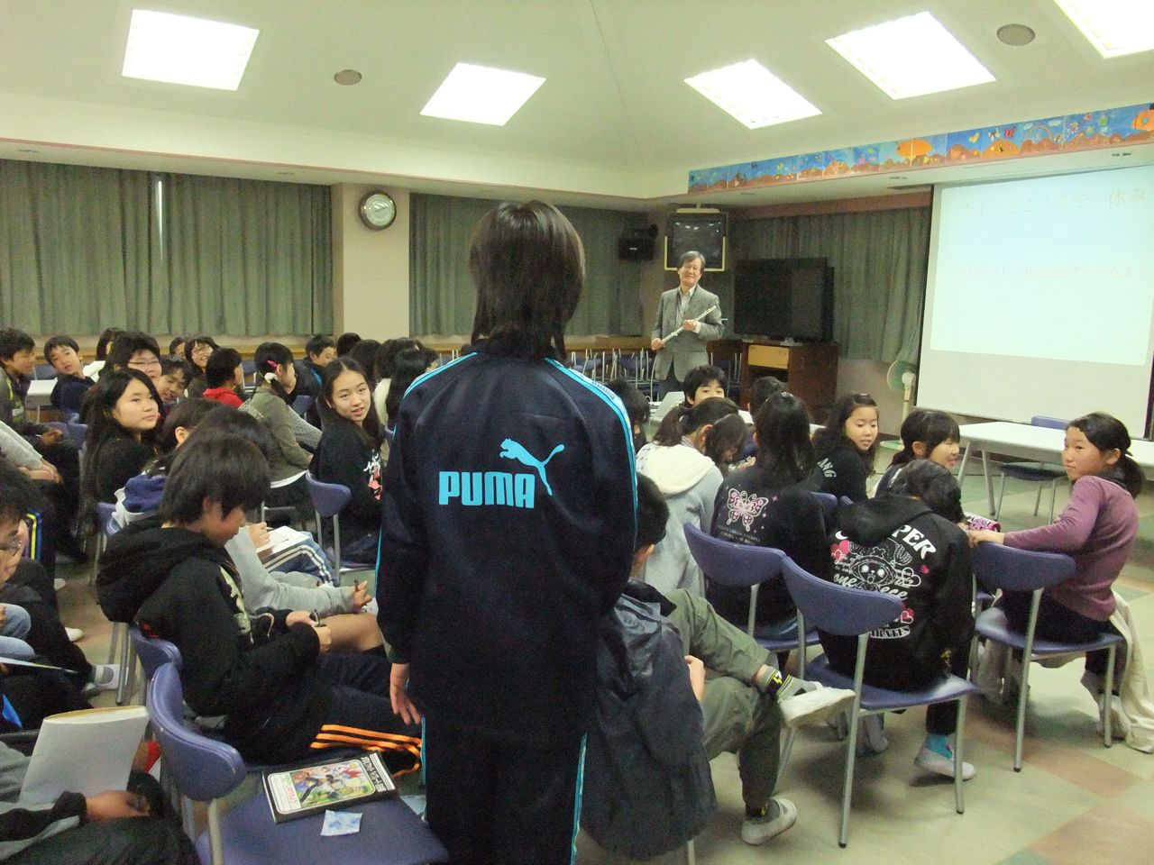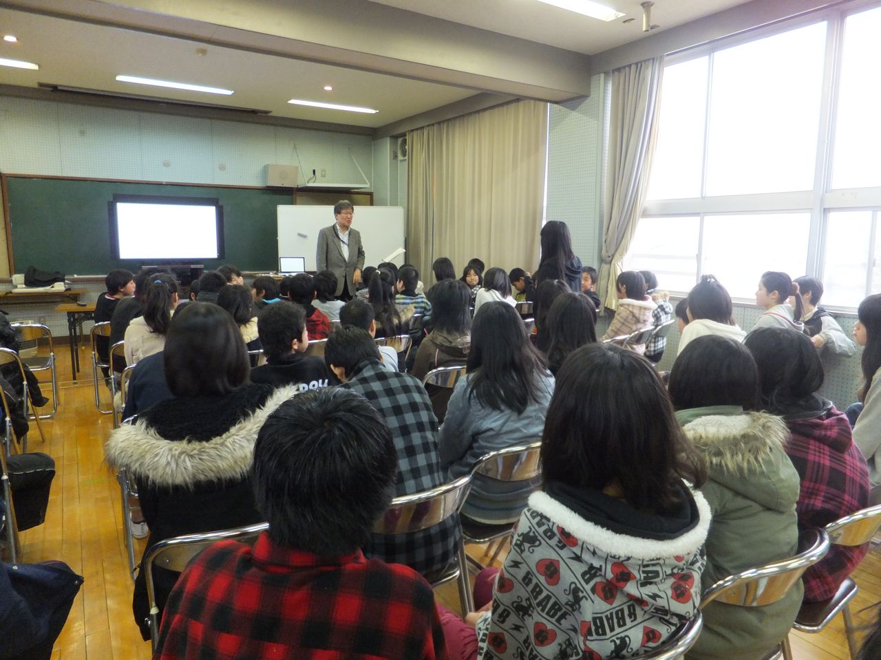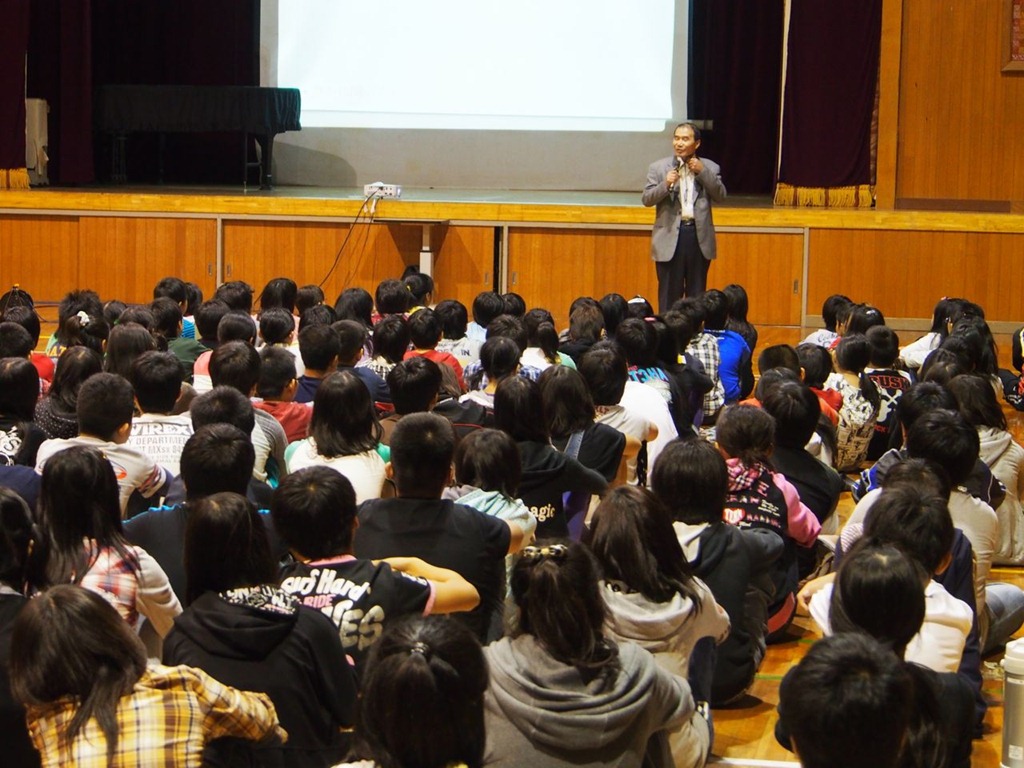 岡校長先生やご父兄も一緒に授業にはいってくれて、生徒はみんなとても活発に、熱心に聞いてくれて、のせられて楽しく話しました。