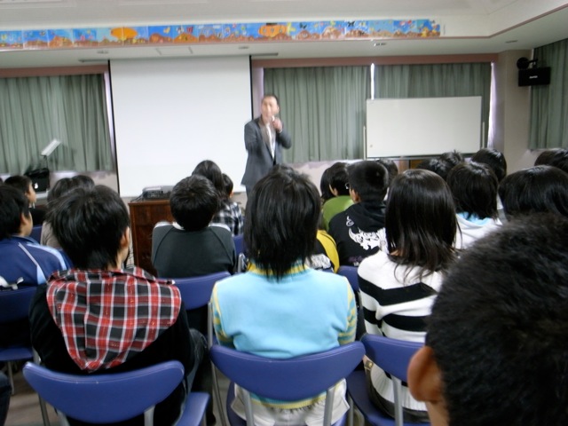 宮小学校6年生への禁煙教育に行きました。内科の女医さん井辺先生と長年タバコをすって喉頭がんになり、声帯を摘出した畑中さんと3人で行きました。まず、校長室に入ると校長先生が「今年は胸をはって畑中さんに会えます。3月から禁煙が続いています」とおっしゃって、畑中さんを大いに喜ばせてくれました。この校長先生はとても生徒思いで、毎年畑中さんのお話を聞くたびに「禁煙しよう!」と決心していたのですが、ストレスの多いお仕事で、どうしても禁煙できなかったのですが、来年3月までは何があっても禁煙する」とおっしゃってくれました。畑中さんは一緒に行かせていただくと、必ず「この学校は何人くらいの先生が喫煙していますか?」と校長先生や養護の先生に聞いておられます。この熱心さで、最近はどの学校もずいぶん喫煙している先生が少なくなりました。生徒さんがたも5クラスまとめてだったので少し心配しましたが、とても熱心に聴いてくれました。学年主任の先生が話し始めるとそれまでざわついていた生徒がみんな静かになる姿に感銘を受けました。教育のプロの技を見た感じがしました。写真は1枚目は校長先生、右が井辺先生左が畑中さん。2枚目は授業風景。3枚目の写真は畑中さんが生徒に話しているところです。 左が畑中さん 中央 校長先生 右が井辺先生 校長先生と井辺先生がお話になっているところです。 声帯をなくした畑中さんが器械を使って声を出し、生徒が水を打ったように静かに聴いているところです。 2010年12月14日20101214 東京2010年12月16日20101216山東小学校で禁煙授業2010年12月16日 山東小学校で6年生に禁煙教育の授業をしました。まじめな生徒さんたちで、授業はとてもやりやすく、こちらの問いかけにも活発に応じてくれました。質問もよくしてくれました。いつも出る質問ですが「たばこは悪いとわかっているのになぜ作るのですか?」という質問です。「今までたばこを吸ってきた人が急に今日から無くなると困るので、禁煙治療をしたり、君たちが大人になってもすわなければ作る必要がなくなるので、そのときは作らなくても良くなります。タバコ農家やたばこやさんの生活も考えなければならないし、今すぐには難しくても、君たちが大人になれば作らなくても良いような社会を作りましょう」と答えますが、やはり苦しいいいわけにしか聞こえません。 校長先生や養護教員の先生とお話しをさせて頂くと、教職員の中で喫煙者は約1名。とても肩身が狭い感じで、夕方授業が終わってから「ちょっと車へ行ってきます」といって、ご自分の車の中でたばこを吸っているような状況のようです。 2011年01月14日20110113禁煙教育授業2011年01月13日 紀の川市立中貴志小学校へ学校保健の一環として、口腔の健康と禁煙教育の授業に行ってきました。これは学校歯科医の先生のご紹介で行かせてもらったものです。生徒数76名で、2クラス一緒に入ってもらい、授業をしました。学校医の内科の先生とご父兄の一部も聞いていただき、とても熱心に聞いてくれたので、楽しく授業ができました。養護教員の先生が事前アンケートを集計してくれており、それを見せてもらうとたばこに対する意識が既に十分ある様子で、保健体育の授業やその関連のところで生徒さんへの教育がされているような感じでした。それだけにスムースに授業に入れました。口腔の健康の大切さと、自分自身の健康。そして社会生活の中での楽しさなどについて十分話すことができました。こちらからの質問にも活発に答えてくれて、充実した授業となりました。授業後に校長室で校長先生、養護教員、内科の学校医と学校歯科医と一緒にお話しをさせて頂きました。その中で「生徒さんの反応がとても落ち着いており、ゆったり、のびのびと育っている感じがしたこと。それでいて活発に答えてくれてとても授業がやりやすかった」事などについてお話しをし、校長先生からは「生徒だけではもったいないので、機会を作ってご父兄にも話しをして下さい」と言って頂きました。内科の先生からは健康全般について、学校歯科医の女医さんからは「この学校の校長先生は、副校長から校長になられたので、学校の細部にまでとてもお詳しく、生徒さんのことをとてもよく把握していらっしゃる」といったお話しを頂きました。写真は授業風景です。 担任の先生からお話を聞いているところです。 授業風景です。 生徒から「悪いとわかっているのにどうしてたばこを作るのですか?」という鋭い質問に、返事に窮して困っているところです。